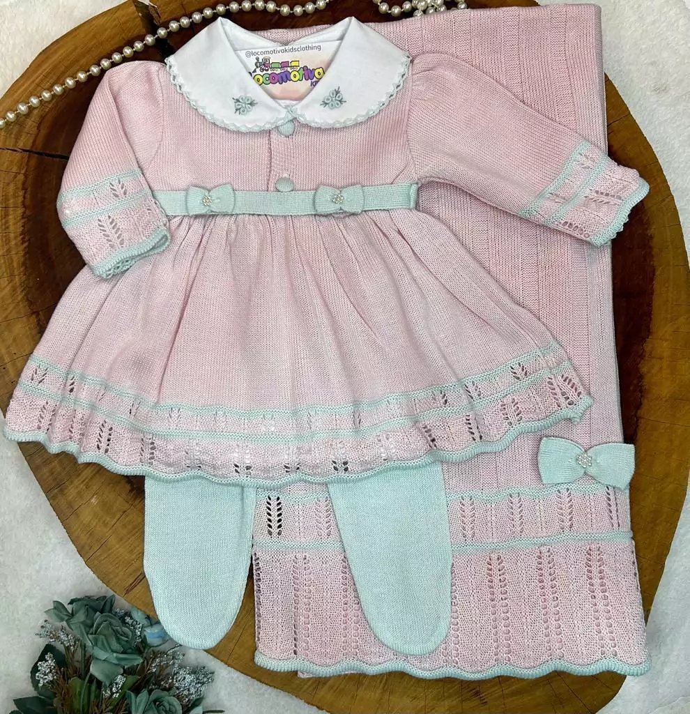 kit2 - Saída Maternidade: 3 pc: Vestido + calça + Manta